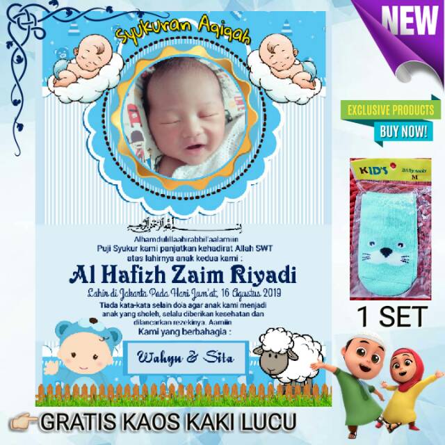 Stiker Aqiqah Anak 15x10cm Gratis Kaos Kaki Bayi Gratis Pakai Foto Anak Tercinta Shopee Indonesia