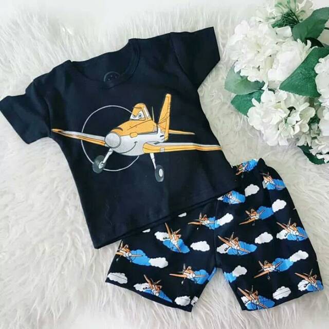 Planes Setelan Anak Bayi Setelan Baju Bayi Laki Laki Stelan Kaos Celana Bayi Cowok Lucu Keren Shopee Indonesia