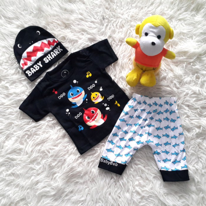 Baju Anak Lucu Baju Bayi Laki Laki Setelan Anak Cowok Set Topi Baby Shark Murah Shopee Indonesia