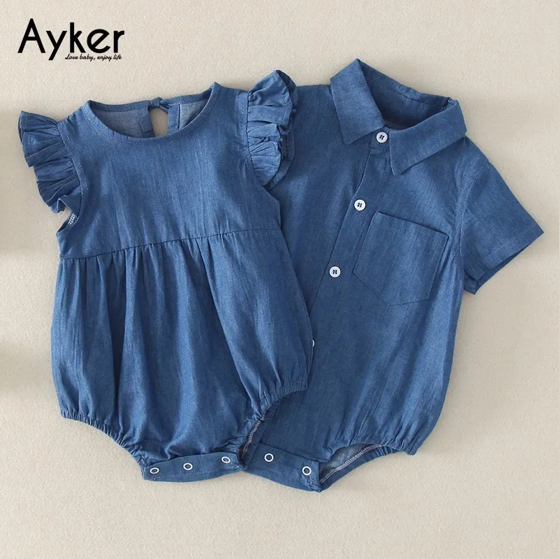 Pakaian Bayi Kembar Laki Laki Dan Perempuan Baju Bayi Baru Lahir Baju Terbang Lengan Kakak Adik Koboi Musim Panas Segitiga Mendaki Pakaian Bodysuit Aliexpress