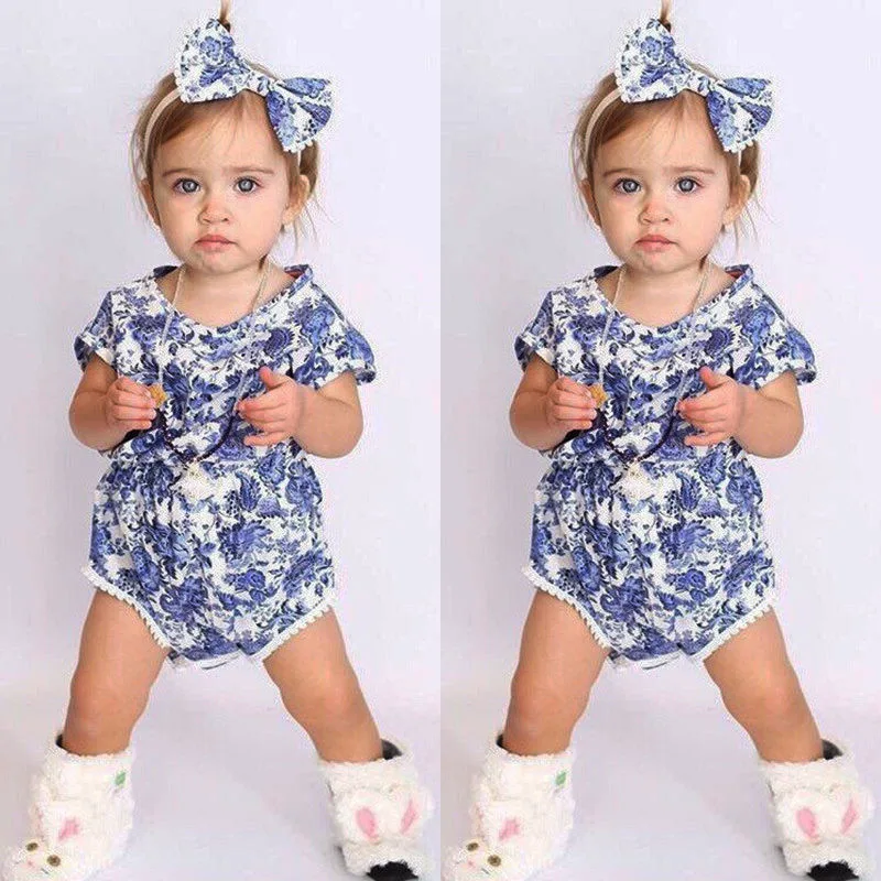 0 2y Bayi Perempuan Bunga Biru Dan Putih Cina Gaya Bodysuit Lucu Bayi Rumbai Pakaian Tanpa Lengan Musim Panas Pakaian Pakaian Bodysuit Baby Sleeveless Bodysuit Babybodysuit Baby White Aliexpress