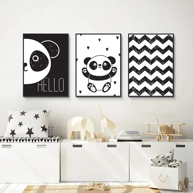Hitam Putih Panda Lucu Nursery Kanvas Garis Lukisan Abstrak Anak Poster Dan Cetak Nordic Gambar Anak Bayi Dekorasi Kamar Aliexpress