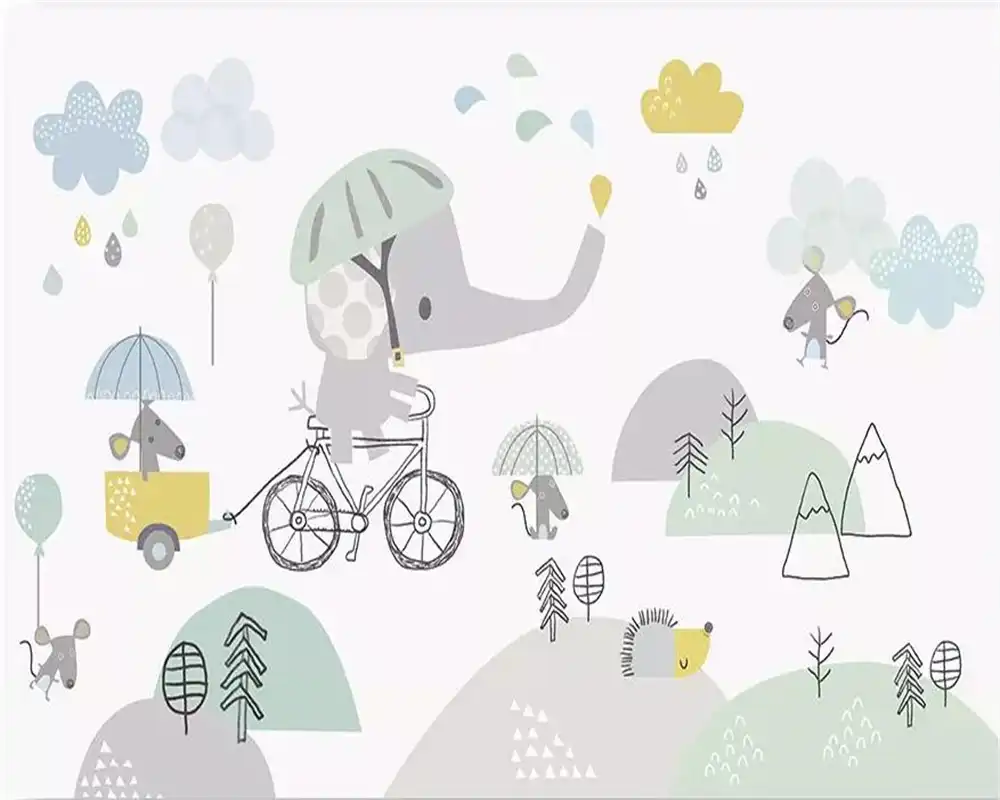 Beibehang Custom Wallpaper Baby Room Cute Cartoon Elephant Riding Bicycle Hamster Cloud Children Background Walls 3d Wallpaper Aliexpress